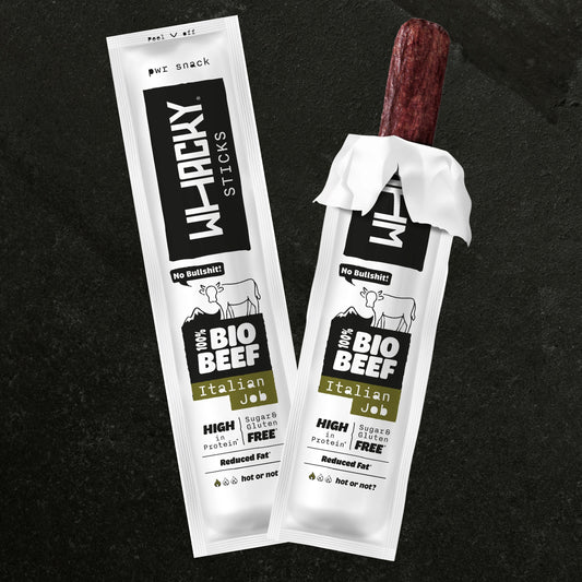 Whacky ist der Snack für herzhafte Proteinpower – mit 100% Bio-Rind, ehrlichen Zutaten und einem Geschmack, der dich wirklich satt macht.