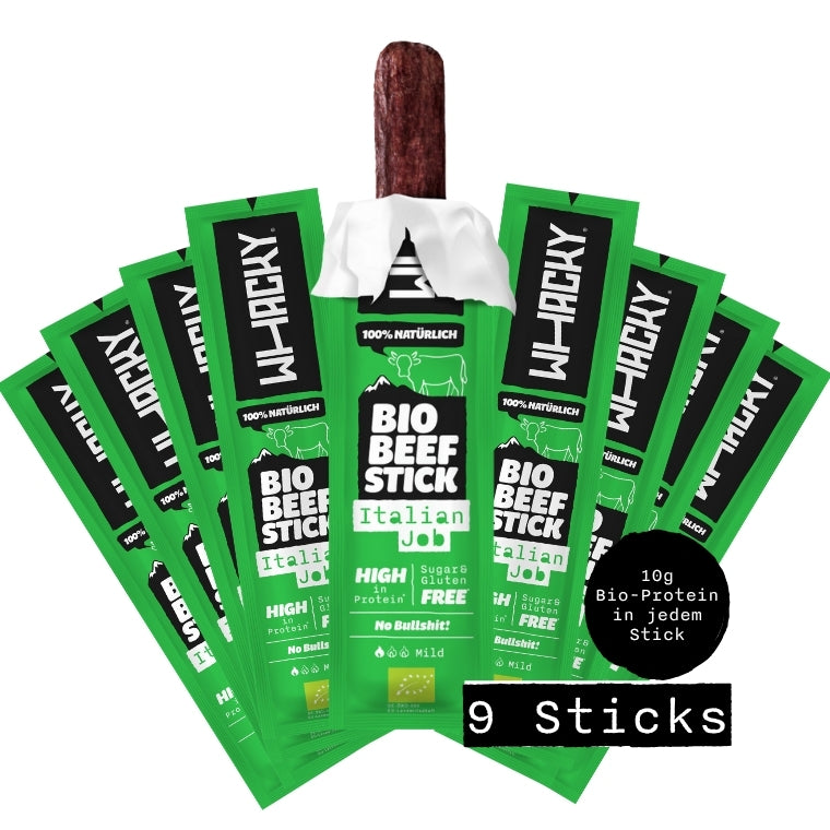 58 reviewsSold outRegular price 21,99 €Regular priceUnit price €7,64 per per 100gSale price 21,99 -Liquid error (snippets/price line 145): divided by 0%€7,64 per 100g incl. 7% VAT (DE), country-specific VAT & shipping will be calculated during the purchase processOrganic Beef Sticks Italian Job 30x 32g